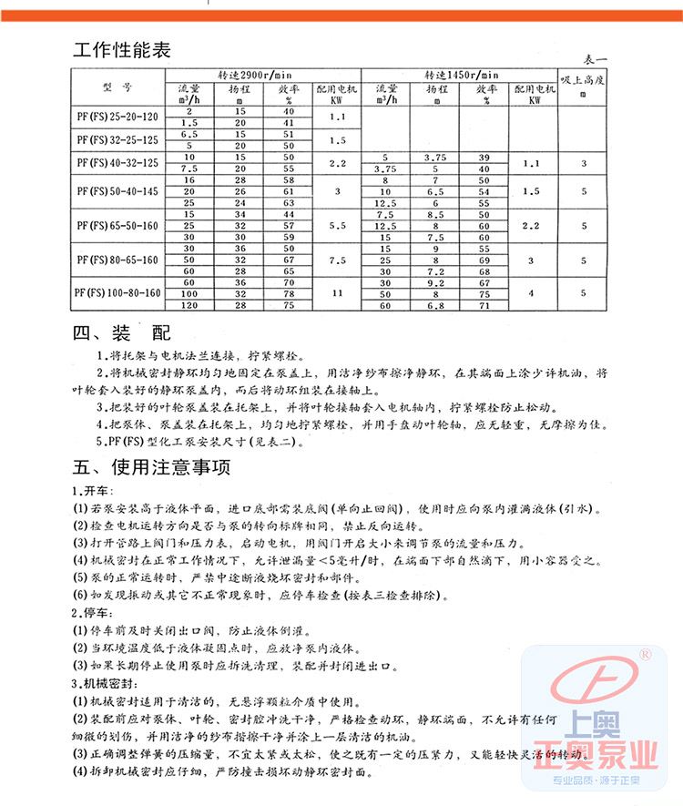 PF型強耐腐蝕塑料離心泵,其泵體泵蓋,葉輪及其輸送介質接觸的零件均采用聚偏氟乙烯或增強聚丙烯模壓加工或注塑加工而成。