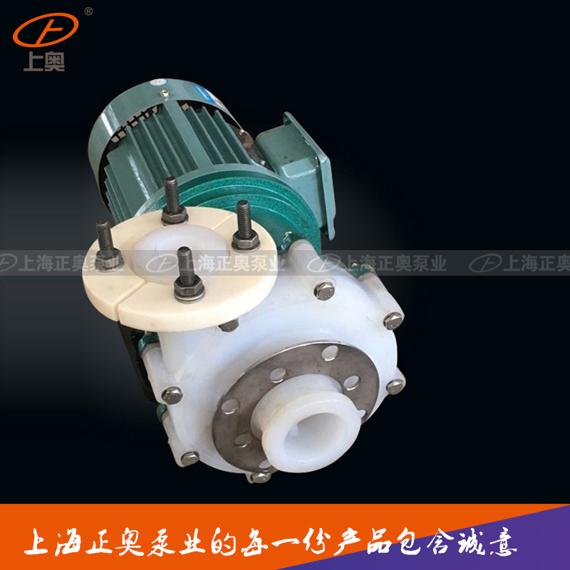 CQB-F型氟塑料磁力驅動泵,采用磁力耦合傳動,不存在動密封點,因此杜絕了一般軸傳動式離心泵軸封處跑、冒、滴、漏的現象。其過流部件采用氟塑料及高純度工業陶瓷制成,具有優異的耐腐性及密封性。CQB-F氟塑料磁力泵設計獨特,無需機械軸封,不滲漏,液體過流部件選用氟塑料,陶瓷、氟橡膠等材料,泵體外殼用金屬材料固定,故泵體足以承托管道的重量,使用保養為方便。小于DN50mm的為全氟塑料磁力驅動泵。
