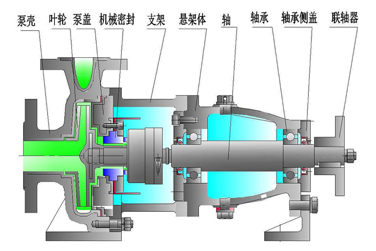 IS、IR型泵通用性廣,全系列共140種規格,但只用四種軸;同一規格的軸,軸承,軸封,