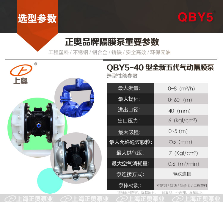 產(chǎn)品名稱:QBY5-40型氣動隔膜泵【上海正品五代隔膜泵】