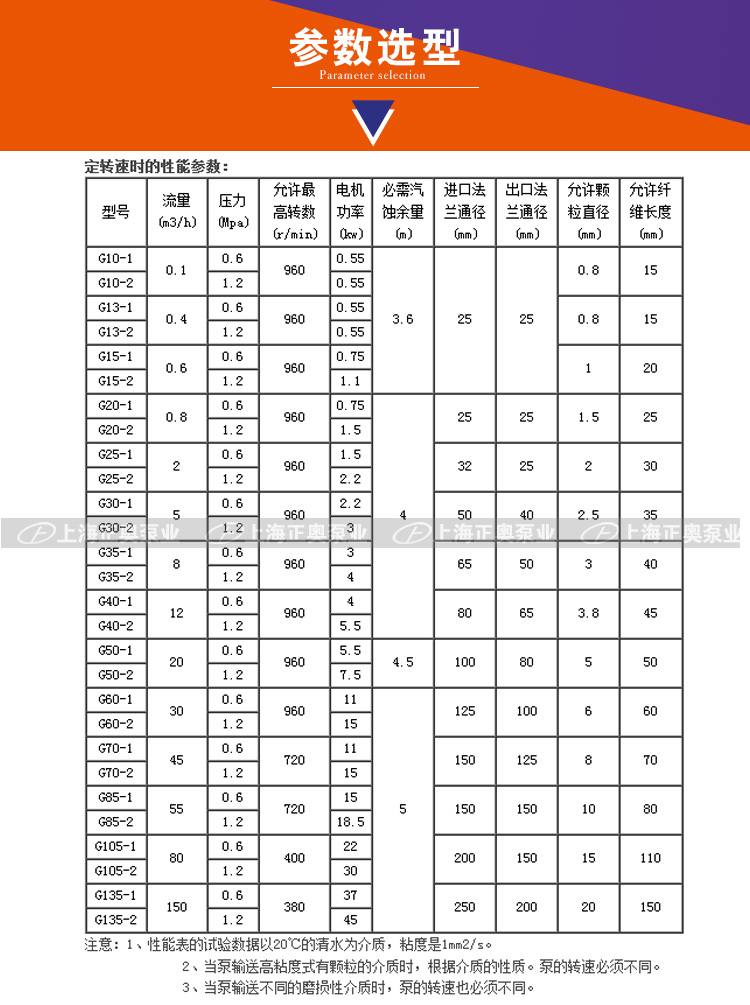 五、衛(wèi)生級螺桿泵技術(shù)參數(shù):