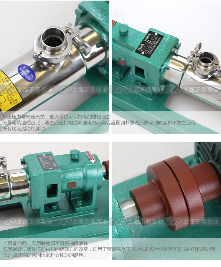 因定子選用多種彈性材料制成,所以這種泵對高粘度流體的輸送和含有硬質(zhì)懸浮顆粒介質(zhì)或含有纖維介質(zhì)的輸送,有一般泵種所不能勝任的特點(diǎn)。其流量與轉(zhuǎn)速成正比。
